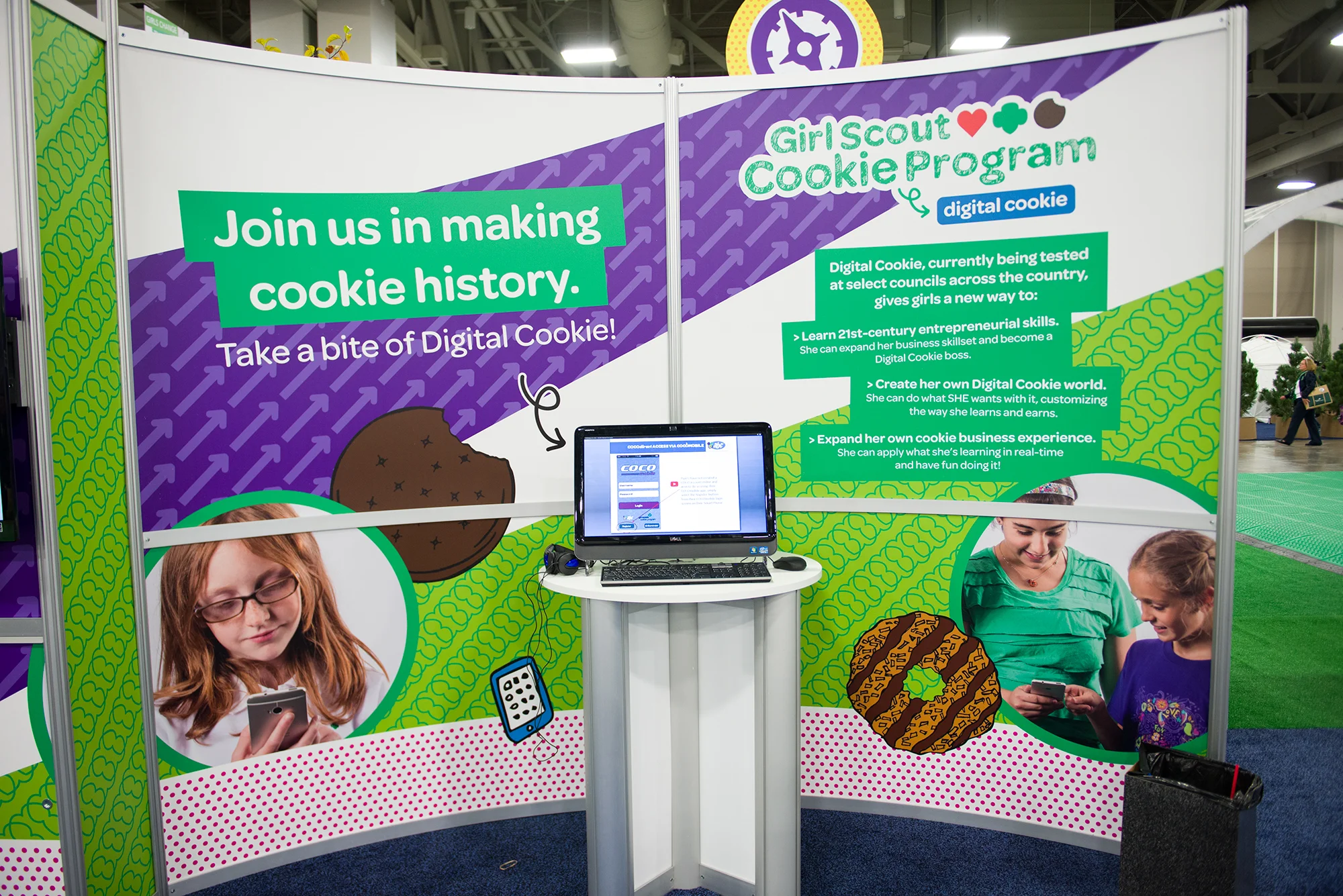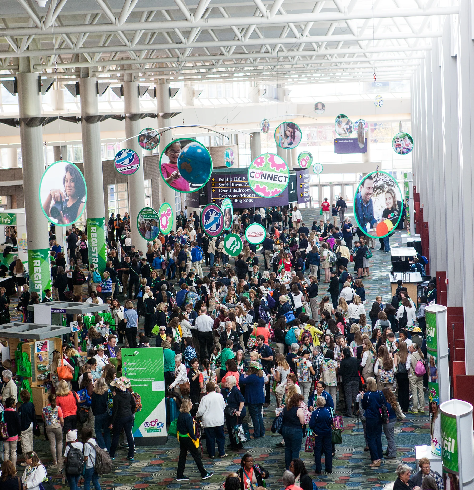 Exhibit hall entrance and Girl Scouts of the USA corporate booth "Girl Scout Garden"