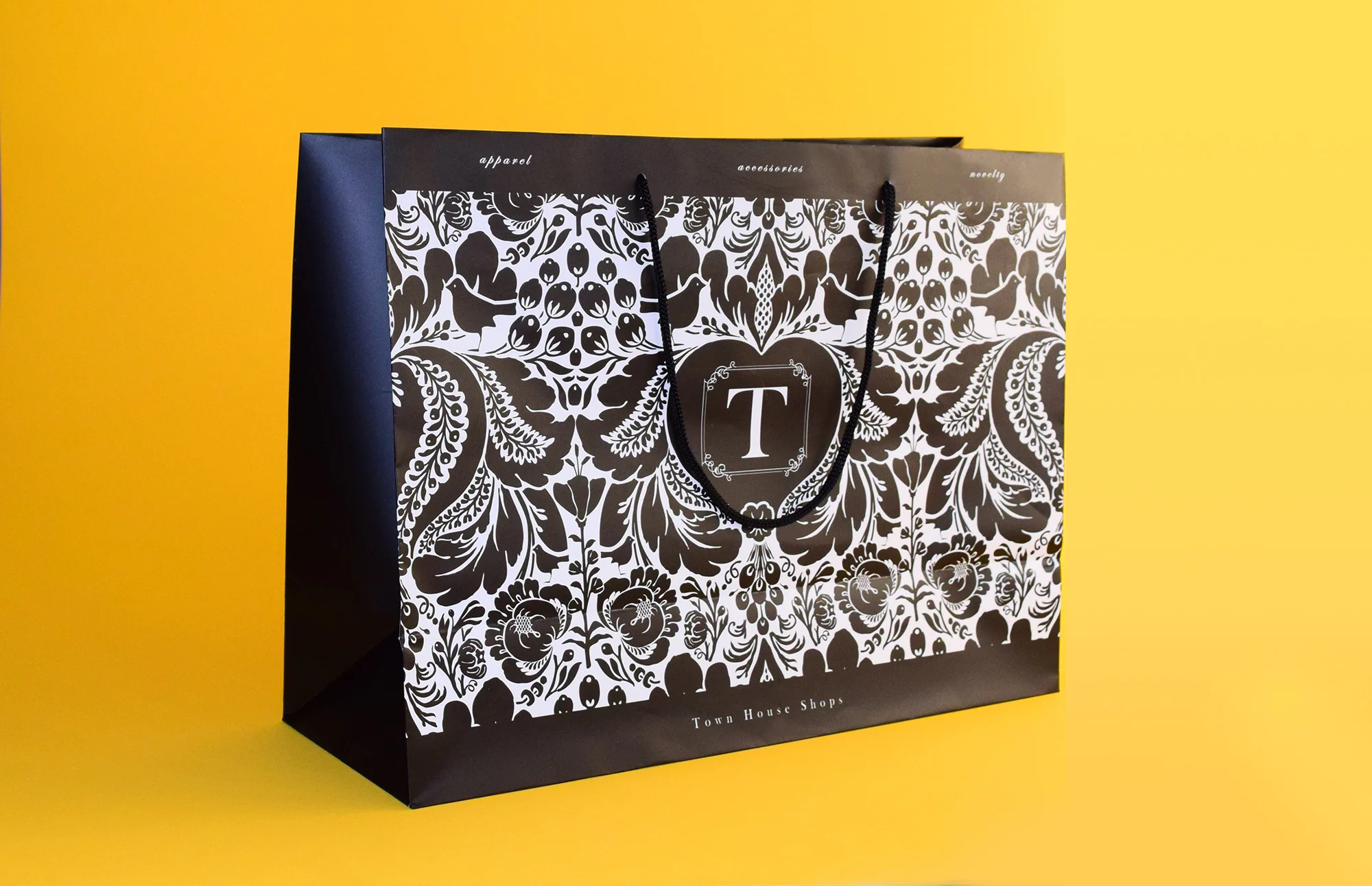 Logo refinements and shopping bag design for Town House Shops in New York City and Hoboken, NJ.